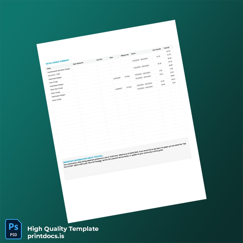 Discover the ultimate solution for generating professional, customizable utility bills with the United States YES Energy Management Editable Utility Bill Template. Available in both Word and PDF formats, this template offers unmatched flexibility and ease of use, making it ideal for professionals needing a reliable utility bill proof of address template.