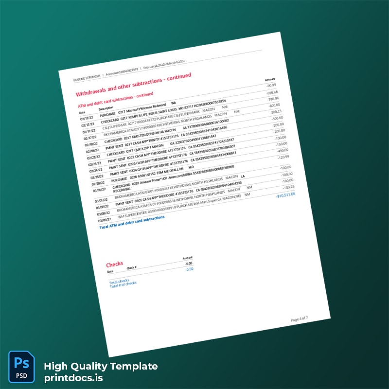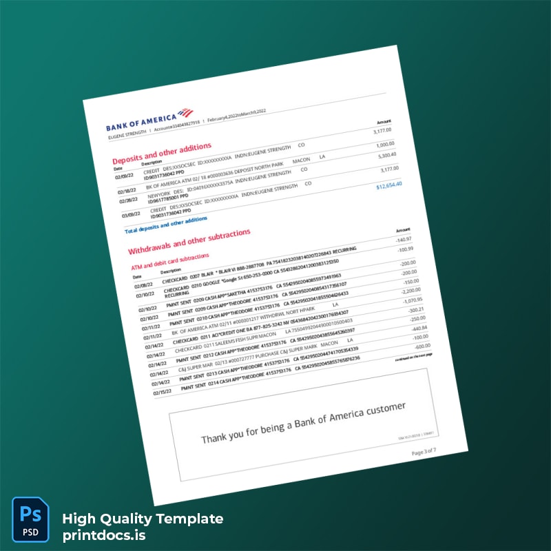 Introducing the USA Bank of America Account Statement Template, designed to streamline your professional documentation needs with precision and efficiency. Available in versatile Word and PDF formats, this template empowers you to create accurate bank statements in just minutes.