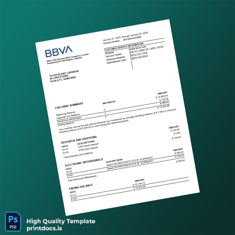 The USA BBAV Bank Statement Template boasts features designed to streamline your document creation: