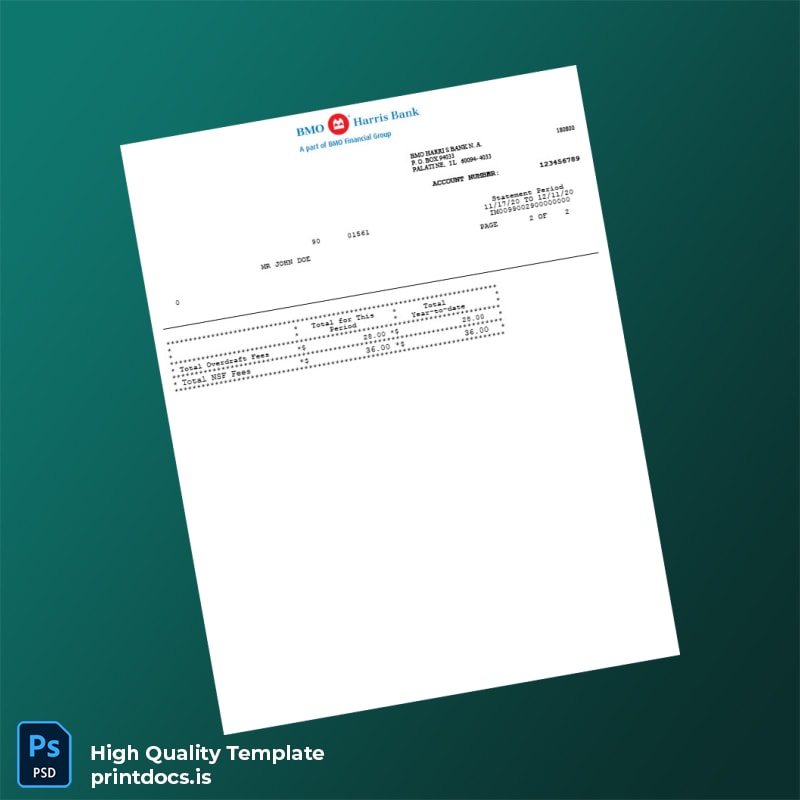 Introducing the USA BMO Harris Bank Statement Template, expertly designed for professionals in need of a reliable and editable document solution. Available in both Word and PDF formats, this template simplifies the process of creating accurate bank statements, making it an essential tool for a variety of business and personal needs.