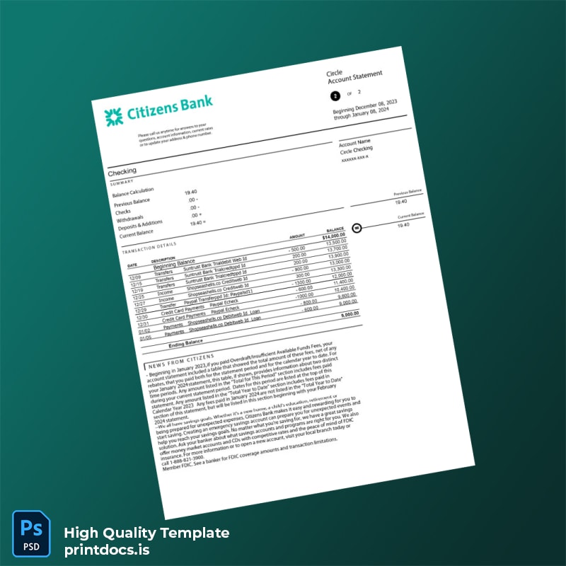 Your efficient and professional approach to document needs begins here—download the USA Citizens Bank Statement Template now!