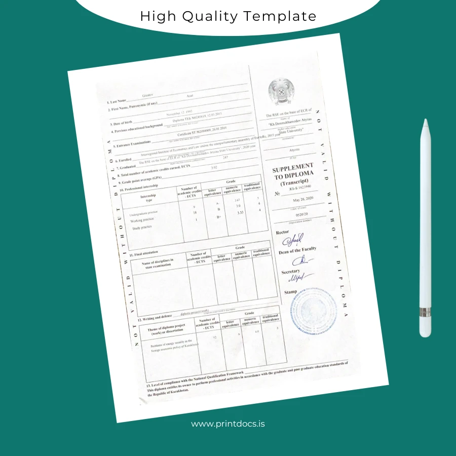 This diploma template expertly addresses common issues such as lost documents, damage, or the need for personal duplicates due to institutional requests. It provides peace of mind with a reliable design that upholds the prestige of your academic achievements.