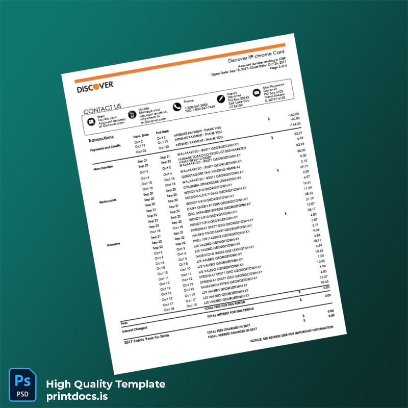 Our USA Discover Credit Card Statement Template offers several critical features:
