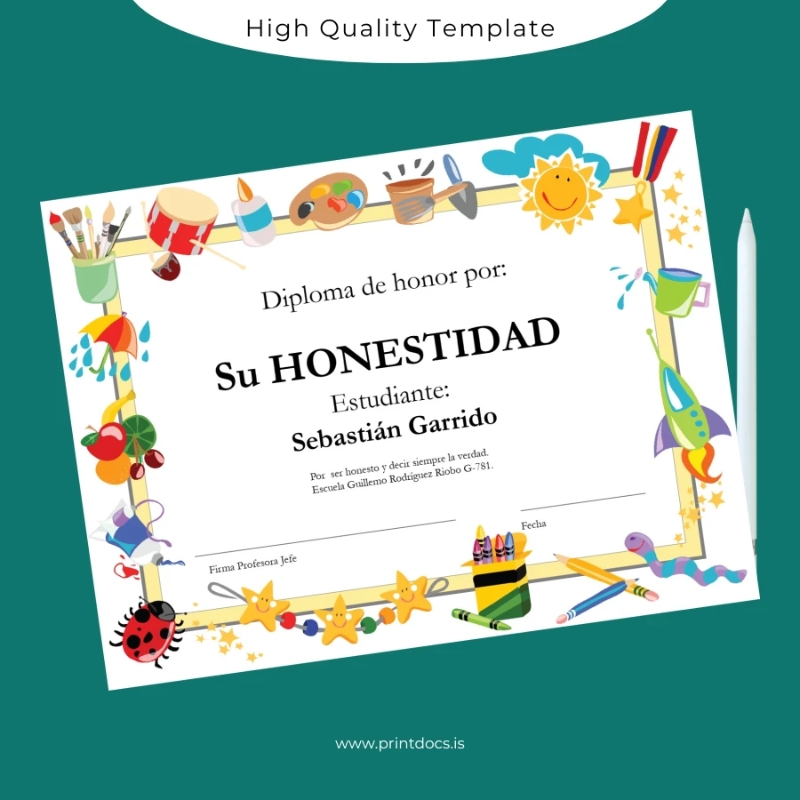 Don’t let the absence of a printed diploma slow you down. Embrace the convenience of digital download with an editable and printable format that ensures your credentials are always professional and presentable. Purchase the USA Escuela Guillermo Rodríguez Riobo Honor Diploma Template (Word & PDF) today and regain control over your academic documentation effortlessly.