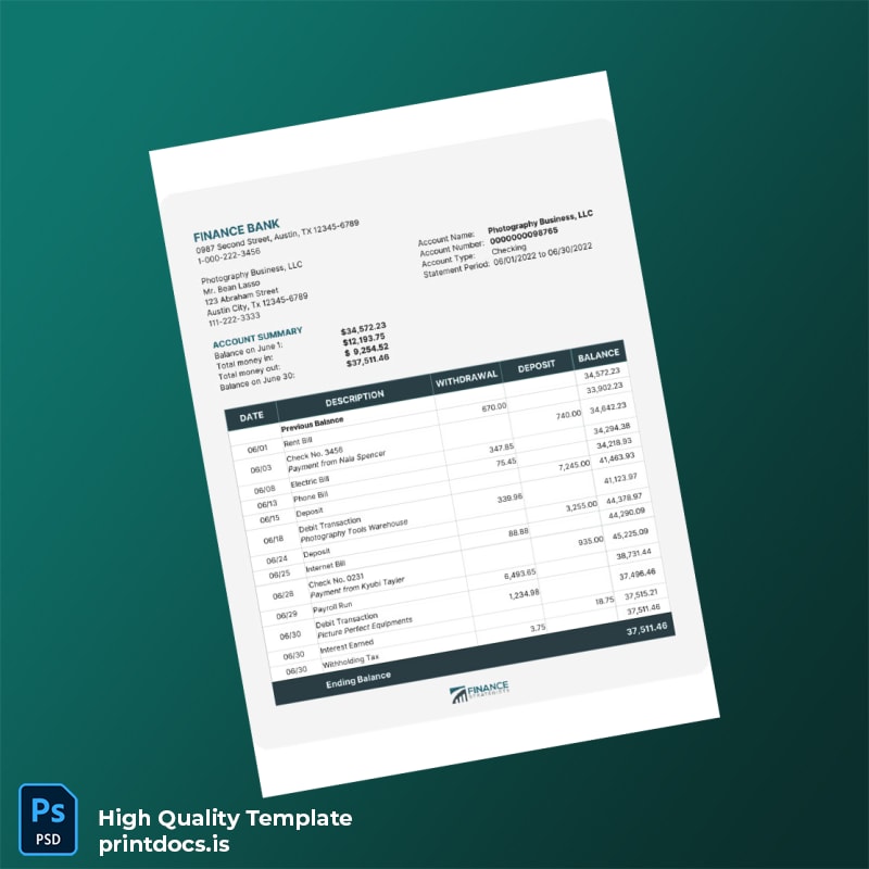Have you ever found yourself frantically searching for a missing bank document, only to realize you need an urgent replacement? As a busy professional, wasting precious time on paperwork can be frustrating. The USA Finance Bank Statement Template offers a seamless way to regain control of your financial documentation. Not only does this bank statement template come in editable Word and PDF formats, but it is designed specifically for both personal and business needs, ensuring your financial records are always accurate and readily available.