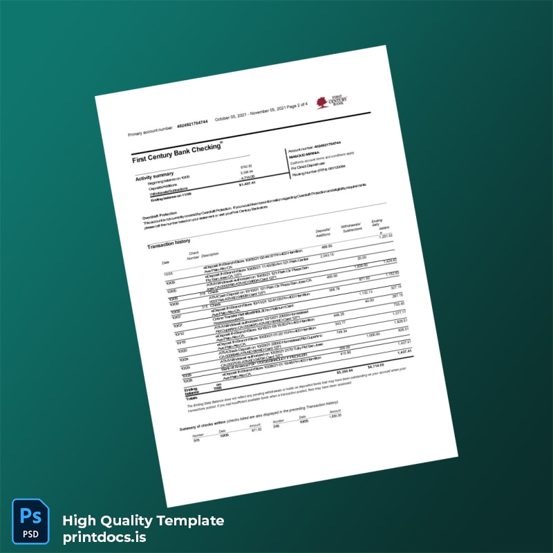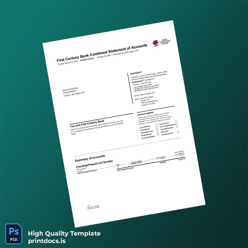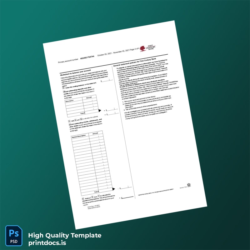 Are you facing difficulties in obtaining a reliable bank statement quickly? The USA First Century Bank Bank Statement Template in Word and PDF formats is your perfect solution. Crafted for professionals who need immediate access to editable documentation, this template accommodates various needs, from loan applications to financial reconciliations.