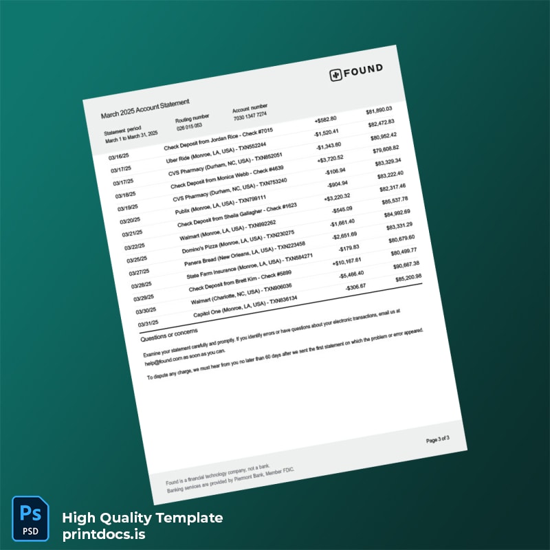 Are you in a pinch, needing a reliable bank statement template? Whether you’re facing a lost document, facing a tight deadline, or simply need to replace expired statements, our USA Found Bank Statement Template is your perfect solution. Available in both Word and PDF formats, this template offers the convenience and professionalism you require.