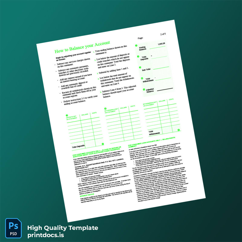 Our USA TD Bank Statement Template boasts several competitive features designed with your convenience in mind: