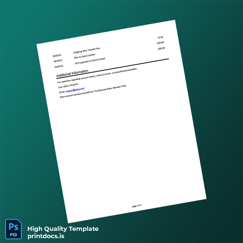 Transform your document management process with the USA The Bancorp Bank Account Statement Template, meticulously crafted in both Word and PDF formats. This highly editable template is designed to meet the demands of professionals needing accurate, customizable documentation.