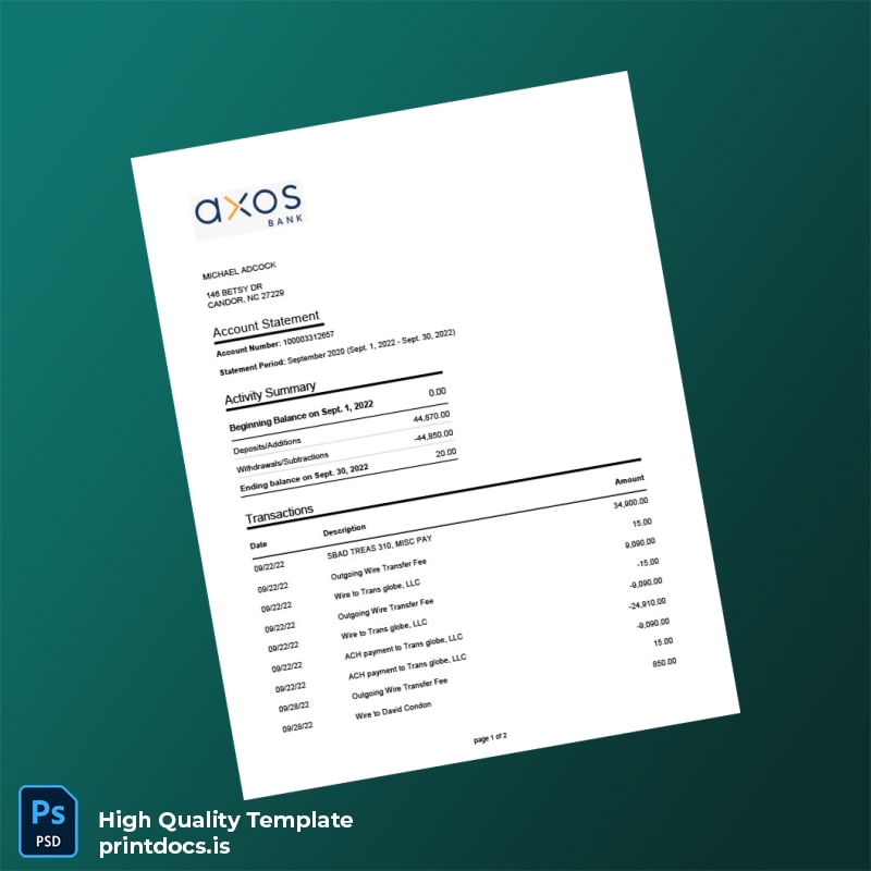 Imagine facing the frustration of a lost bank statement when applying for a loan. With deadlines looming, you need a reliable solution fast. The USA The Bancorp Bank Account Statement Template allows you to swiftly generate a professional-looking statement without the complications often associated with official documents. Discover more about our bank statement template offerings.