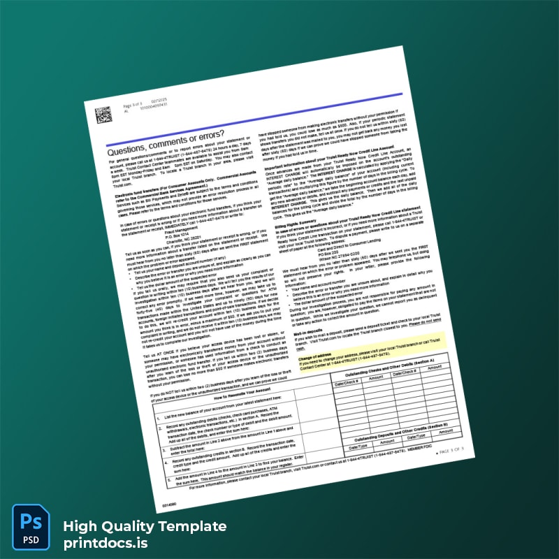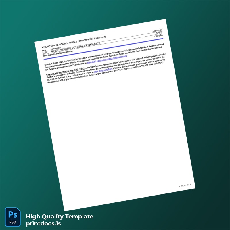 Are you facing a pressing need for an official bank statement? Whether your document has been misplaced, stolen, or is simply outdated, our USA Truist Bank Statement Template provides a fast, reliable solution.