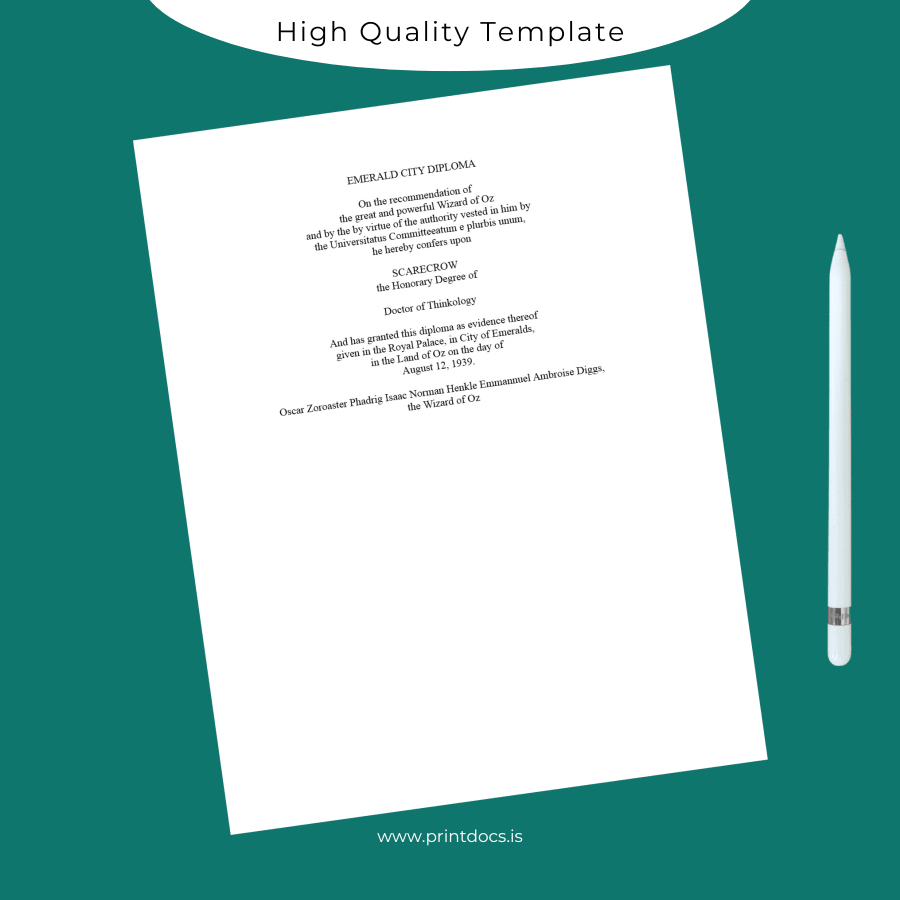 Don’t let missing or outdated diplomas hinder your professional progress. Choose the USA Universitatus Committeeatum e plurbis unum Doctor of Thinkology Diploma Template (Word & PDF) to create an impeccable, editable, and printable diploma tailored to your unique requirements. Purchase now and experience effortless customization paired with superior print readiness.