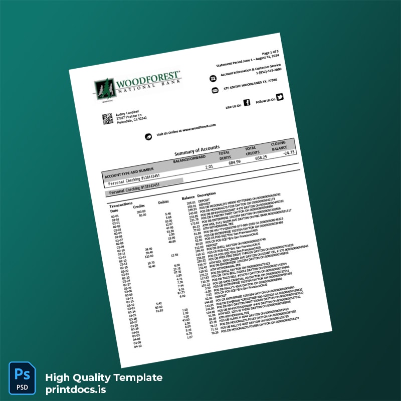 In today’s fast-paced professional environment, needing access to crucial financial documents like bank statements can become a pressing challenge. Whether you’ve lost your original document, had it stolen, or simply require a quick replacement, our USA Woodforest Bank Statement Template in Word and PDF formats provides the perfect solution.