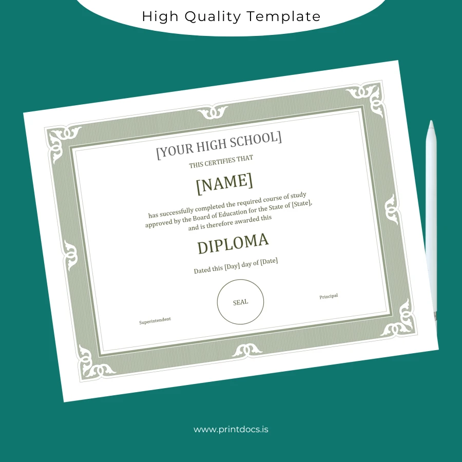 Ideal for individuals who misplaced their official high school diploma, educators requiring customizable templates, or novelty seekers desiring authentic diploma designs, this template resolves common challenges. It alleviates stress related to document absence by enabling quick, reliable production of blank diploma forms suited for either official replacement or personalized accolades.