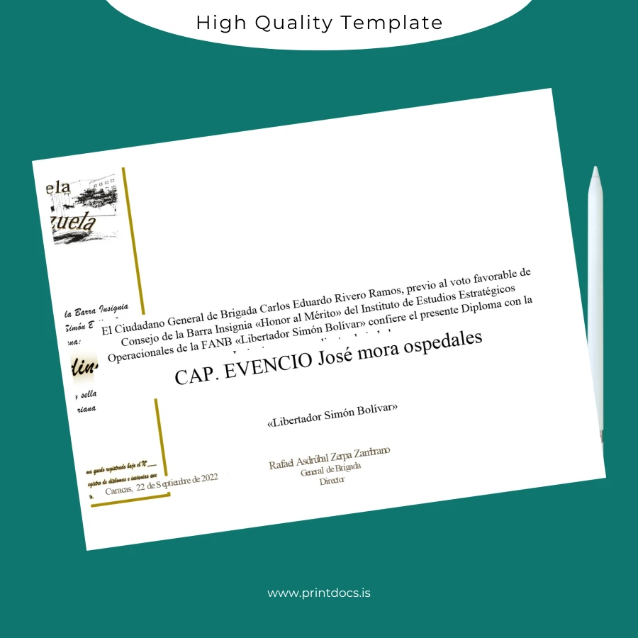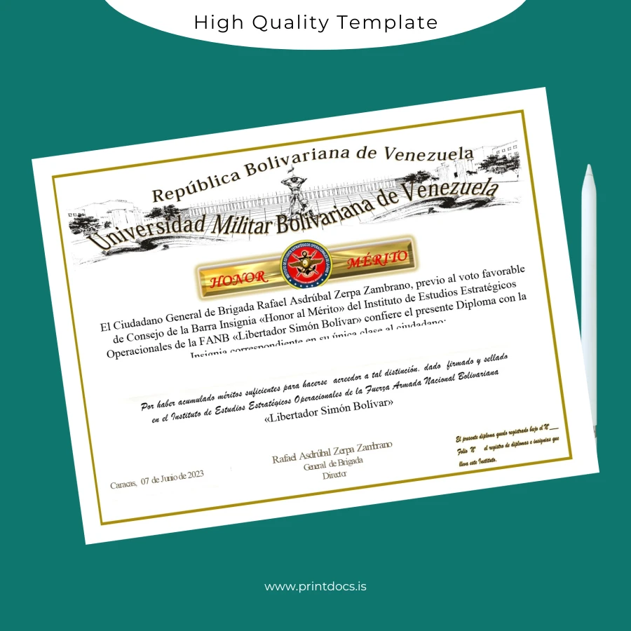 Don’t let administrative challenges hinder your career progress—choose this Venezuela Universidad Militar Bolivariana de Venezuela Master’s Degree Diploma Template (Word & PDF) to restore your credentials reliably and professionally.