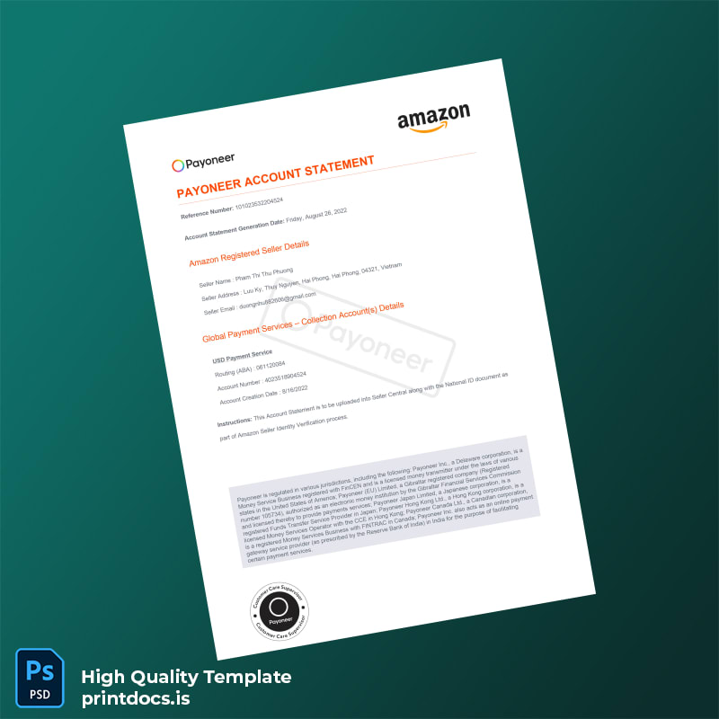Vietnam Payoneer Account Statement Template: Your Swift Solution
