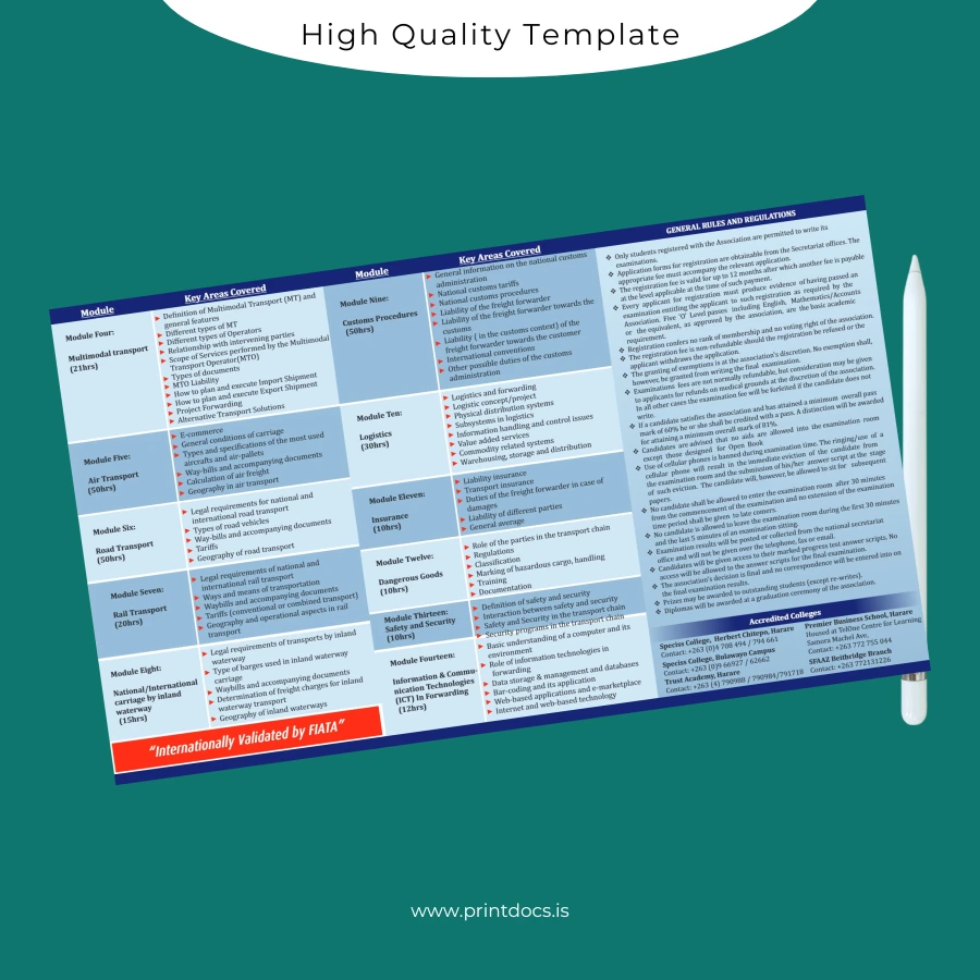 Don’t let missing or outdated documents hinder your career progress. Download the Zimbabwe Shipping and Forwarding Agents’ Association FIATA Diploma in International Freight Forwarding Template today to customize and print a clean, credible diploma effortlessly. Elevate your professional presentation and regain peace of mind with this comprehensive, editable diploma template.